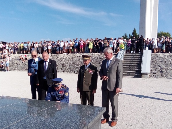 Delegácia mesta Trenčín a ZO SZPB Trenčín 1 ( po "kliknutí" sa foto zväčší ) Historický odkaz SNP Vďaka Povstaniu sa Slovensko zaradilo medzi víťazné národy druhej svetovej vojny. Z vojenského hľadiska SNP významne prispelo k porážke ideológie nacizmu, lebo nemeckí okupanti nemohli presunúť zo Slovenska svoje sily nasadené proti povstalcom na iné bojiská v Európe. Podrobnejšia informácia je tu : je tu >>> Prílohy k informácii: Ministerstvo obrany SR vydalo 80. výročiu SNP augustové číslo mesačníka OBRANA : otvoriť >>> <<< späť na hlavnú stránku |