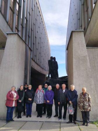 Socha partizána pri železničnej stanici v meste a účastníci zájazdu v exteriéri expozície bojovej techniky Múzea SNP ( po "kliknutí" sa foto zväčší ) Cestu do Banskej Bystrice sme absolvovali po železnici, pri sledovaní nádherných obrazov a scenérií krajiny za oknom, a družnom rozhovore, sme sa ani nenazdali a už sme vystupovali na mieste určenia. Čas do objednanej návštevy Múzea SNP sme strávili v exteriéri prehliadkou expozície vojenskej techniky česko-slovenskej, sovietskej a nemeckej výroby. Najväčšej pozornosti sa dostalo dopravnému a bombardovaciemu lietadlu typu Li-2 a vozňom improvizovaného pancierového vlaku Štefánik. Pri pamätníku SNP sme viac-menej bez slov urobili zopár fotografií. Následnú prehliadku Múzea SNP so sprievodcom hodnotili zúčastnení viac než pozitívne, vyzdvihovali najmä zaujímavý výklad pána Jakuba Mičeva, ktorý historické fakty obohatil autentickými, ale aj úsmevnými príbehmi účastníkov SNP, pričom nadniesol vážne otázky vyplývajúce z tohto obdobia našich dejín.