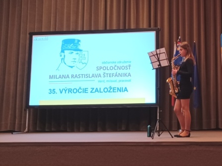 ![]() ( po kliknutí sa foto zväčšia ) V kultúrnom programe predniesla pani Valigurová z Brezovej báseň "Za Milankom Štefánikom“ od autorky Márii Kvetanovej-Laur. K obohateniu programu prispela aj žiačka zo Základnej umeleckej školy Valaská niekoľkými melódiami hrou na saxofóne.