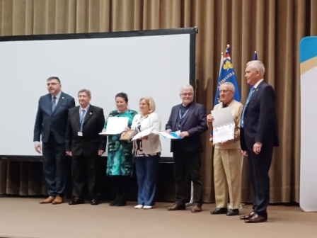 Ocenenia za prácu v SMRŠ si prevzali aj Trenčania: Pavol Švantner, Lýdia Šimková a vedúca PK Trenčín (Po kliknutí sa foto zväčšia) Po prednesení Návrhu plánu práce a rozpočtu na rok 2025 nasledovala diskusia, v ktorých sa účastníci vyjadrili k plánu práce a zovšeobecnili najlepšie skúsenosti zo svojej činnosti od posledného VZ (XXXI.) Po skončení diskusie boli vyhlásené výsledky volieb do dozornej rady SMRŠ. Posledným bodom rokovania bolo schválenie „Uznesenia XXXII. Valného zhromaždenia Spoločnosti Milana Rastislava Štefánika 5. apríla 2025 v Trenčíne“. Po jeho schválení bolo XXXII. Valné zhromaždenie ukončené hymnickou piesňou „Kto za pravdu horí“. Podrobnejšie externé informácie sú tu : Spoločnosť Milana Rastislava Štefánika <<< späť na hlavnú stránku. |