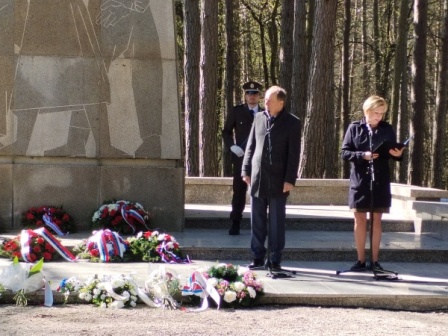 Stretnutia sa okrem starších občanov zúčastnili aj žiaci a študenti ( po "kliknutí" sa foto zväčší ) Trenčania si 80. výročie oslobodenia svojho mesta tradične pripomenuli na slávnostnom stretnutí v lesoparku Brezina pri pamätníku na cintoríne obetí umučených a brutálne zavraždených nemeckými okupantmi, pred príchodom oslobodzovacích jednotiek sovietskej Červenej armády a Rumunskej kráľovskej armády. Podrobnejšie informácie o oslobodení centra Trenčína 10. apríla a jeho predmestí na druhom brehu Váhu 29. apríla 1945 sú tu : otvoriť >>>