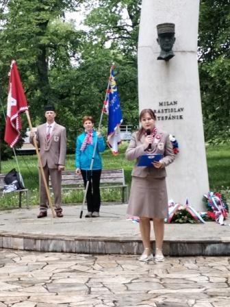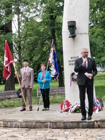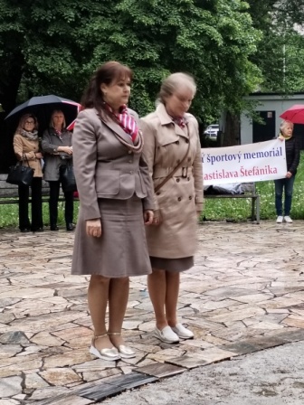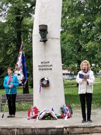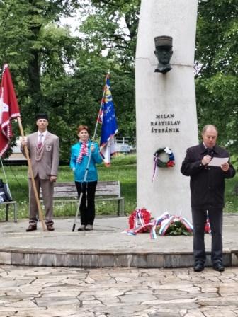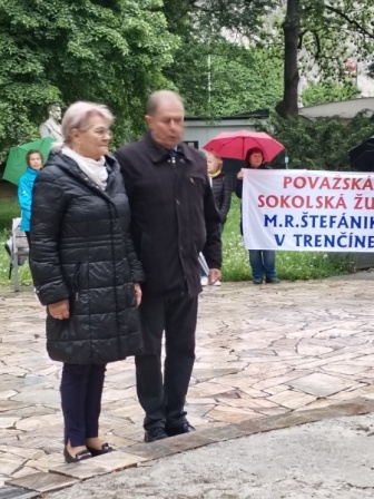 Poslanci MsZ Trenčín, delegácia Považskej sokolskej župy, klubu SMRŠ v Trenčíne a Oblastného výboru SZPB Trenčín M. Ondráš a členka Matice slovenskej J. Poláková ( po kliknutí sa foto zväčšia ) Starostka sokolskej župy Daniela Valentová zdôvodnila prečo je Považská župa pomenovaná po M. R. Štefánikovi. Je to aj kvôli jeho významným športovým výkonom pri niekoľkých výstupoch na Mont Blanc. Miroslav Ondráš, predseda ZO SZPB gen. Goliana Trenčín 1, pripomenul Štefánikove osobné zásluhy na sformovaní jednotiek Československých légií vo Francúzsku aj v Taliansku a na podriadení Československého armádneho zboru v Rusku veleniu Čs. vojska vo Francúzsku. Poukázal aj na skutočnosť, že čs. armádny zbor z Talianska bol ako prvý presunutý do vlasti a nasadený do bojov aj proti Maďarskej armáde.