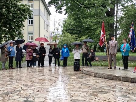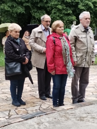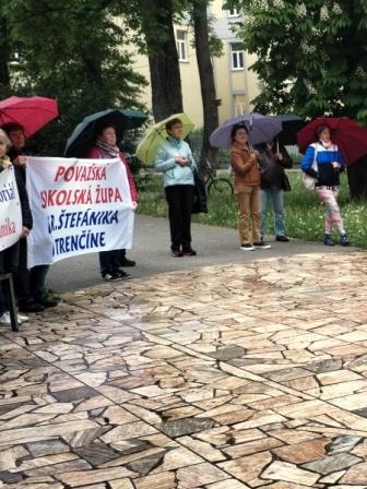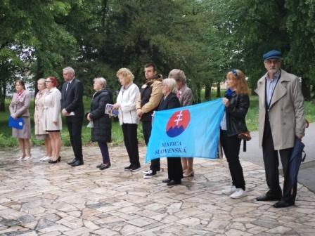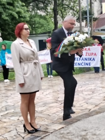 Starostka Považskej sokolskej župy Daniela Valentová Delegácie účastníkov stretnutia pred položením vencov Predseda klubu Spoločnosti M.R. Štefánika P. Švantner ( po kliknutí sa foto zväčšia ) Program začal položením vencov usporiadateľov, poslancov mestského zastupiteľstva, delegácie SZPB a Miestneho odboru Matice slovenskej za sprievodu piesne Slovensko naše v podaní speváckej skupiny Brezinka. Celou spomienkou sprevádzala starostka Považskej sokolskej župy pani Daniela Valentová.