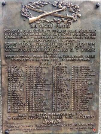 Kasárne SNP a pomník vojakov popraveným v Kragujevci ( po "kliknutí" sa foto zväčší ) Stretnutie v Trenčíne sa konalo v objekte Kasární SNP pri pamätníku 44 popravených vojakov. Jeho program pripravili Klub vojenskej histórie protifašistického odboja Základnej organizácie Slovenského zväzu protifašistických bojovníkov generála Goliana Trenčín 1 a Srbsko-slovenský spolok SLOGA s podporou veliteľa objektu Kasární SNP, ktorý ho 11. júna dopoludnia osobne otvoril.