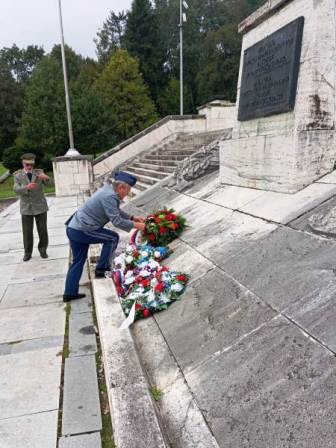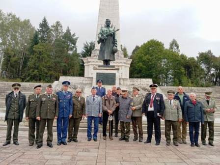 Účastníci stretnutia pri Zemplínskej Šírave dňa 25.9.2025 ( po kliknutí sa foto zväčšia ) V piatok 26. septembra účastníci zájazdu navštívili Duklianske bojisko a pamätníky na Dukle aj vo Svidníku. K pamätníku na cintoríne príslušníkov 1. československého armádneho zboru predseda Peter Vojtek, predseda Klubu generálov SR s delegáciou položili veniec k pamätníku a potom si všetci prezreli celý cintorín. Na pamiatku si účastníci VHC VÝCHOD urobili spoločnú fotografiu pred pamätníkom: